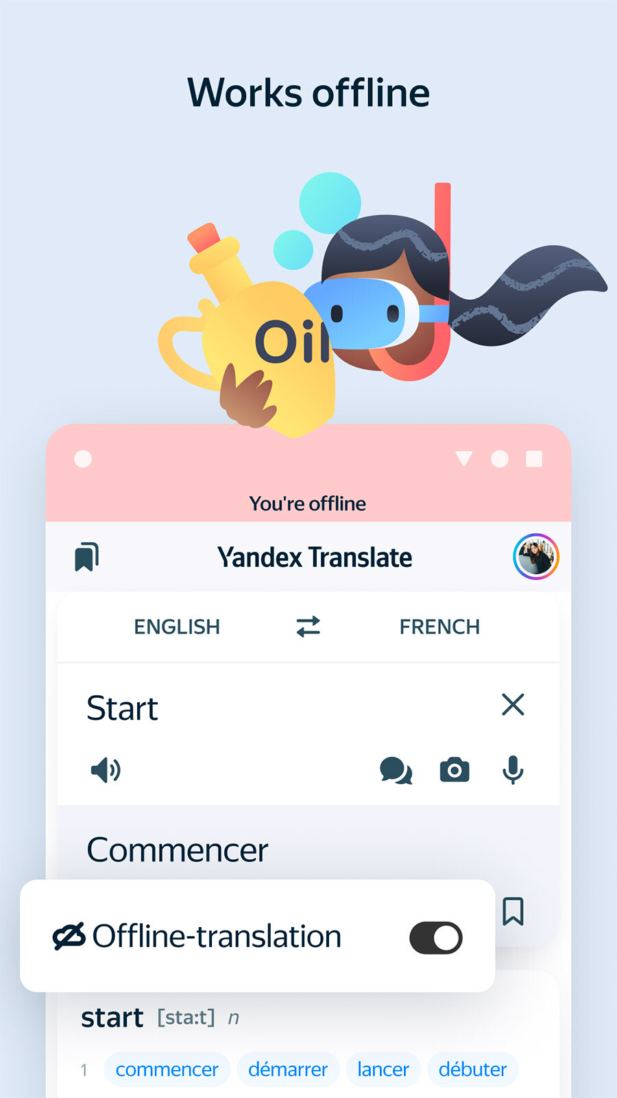 كما يتيحان إمكانية الترجمة الفورية من خلال استخدام كاميرا الهاتف الذكي. هذه الميزة يمكن أن تكون مفيدة جدا في المقاهي والمطاعم التي تتوفر على قائمة الطعام باللغة الروسية فقط.
